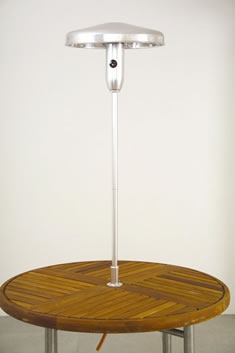 Mini Tech Table Heater Designed & Manufactured in the UK The Mini Tech table heater, designed to be sleek, and elegant. The Mini Tech uses surface combustion technology rather than the traditional burner/emitter assembly and is a far more efficient way to produce infrared energy. The result is a slim line stylish heater producing a 3-4-metre heat circle, which uses a full bottle of gas in approximately 100 hours. The unique universal clamp will fit any table with a parasol hole 30-60mm in diameter. Patent pending. Gas bottle sold seperatley from local suppliers.